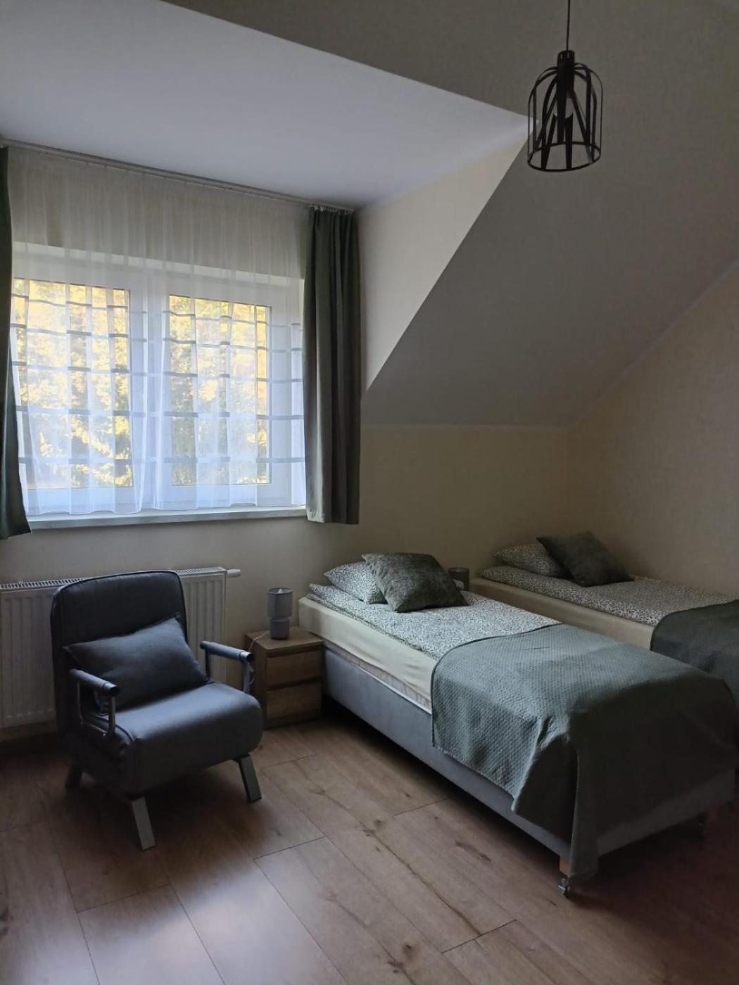 Pokój Dwuosobowy z 1 lub 2 łóżkami i łazienką. This twindouble room has a private bathroom, a tea and coffee maker, a dining area as well as a terrace. The unit has 1 bed. Pokój Dwuosobowy z 1 lub 2 łóżkami - 2 osobowy.