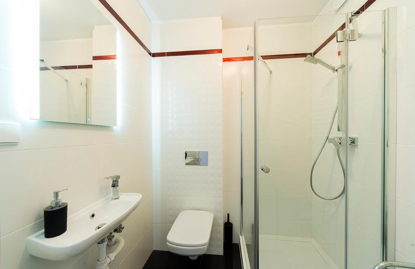Rodzinny apartament typu Studio. Meals can be prepared in the kitchen, which comes with a stovetop, a refrigerator and an electric kettle. The studio provides a seating area, a wardrobe, a balcony with a quiet street view as well as a private bathroom featuring a bath or a shower. The unit offers 2 beds. Studio - 4 osobowy. Powierzchnia pokoju ok.: 26 mkw.